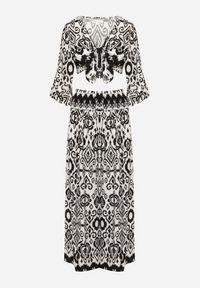 Czarny Bawełniany Komplet Koszula z Wiązaniem i Spódnico-Szorty z Nadrukiem Iffarina. Odkryj magiczny świat mody z Bawełnianym Komplektem Koszula z Wiązaniem na guziki i Spódnico-Szorty z Nadrukiem z elastyczną gumką w pasie Iffarina! Ten wyjątkowy zestaw łączy w sobie klasyczny fason i nowoczesny design, dzięki czemu z łatwością dopasujesz go do wielu okazji. Na co dzień zestaw genialnie skomponuje się z espadrylami i delikatnymi dodatkami.
