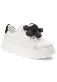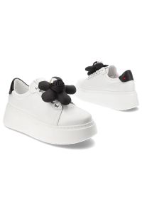 CheBello - Białe Sneakersy Chebello Eleganckie Obuwie Z Kwiatem. Kolor: biały. Materiał: skóra. Wzór: kwiaty. Obcas: na platformie