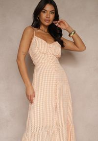 Pomarańczowa Rozkloszowana Sukienka z Wiskozą na Cienkich Ramiączkach z Guzikami Efrisela. Zakochaj się w rozkloszowanej sukience Efrisela, która łączy styl z kobiecą elegancją! Jej lekki krój z wiskozą idealnie podkreśla Twoją sylwetkę, a delikatne cienkie ramiączka dodają szyku. Oferuje subtelny dekolt, który uwydatnia szyję, a guziki na przedzie to stylowy akcent, który przyciąga wzrok. W zależności od okazji połącz ją z sandałami na obcasie na wieczorną kolację lub z ulubionymi trampkami i denimową kurtką na spacer po mieście – możliwości są nieograniczone! Model posiada podszewkę i regulowane ramiączka.