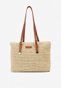 Jasnobeżowa Duża Pleciona Torebka Wykończona Rączkami z Imitacji Skóry Carpinea. Duża Pleciona Torebka Carpinea to absolutny must-have w garderobie każdej kobiety śledzącej najświeższe trendy. Jej obszerność świetnie sprawdzi się w trakcie codziennych wyzwań - bez problemu pomieści format A4 i wszystkie niezbędne akcesoria. Kunsztownie zapleciony materiał nadaje jej unikalnego, boho charakteru, a rączki z imitacji skóry są nie tylko praktyczne, ale i stylowe. Ta torebka uzupełni zarówno lekki, letni strój na spotkanie z przyjaciółkami, jak i elegancką stylizację na wieczorne wydarzenie – wystarczy dołączyć sukienkę i sandały na obcasie, by stworzyć look godny fashionistki!