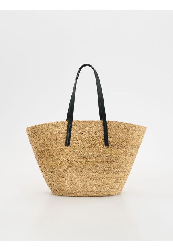 Pleciona torebka koszyk - czarny. Torebka koszyk o prostej formie wykonana z papierowej słomki.