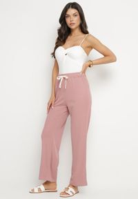 Różowe Spodnie z Gumką w Pasie i Szeroką Nogawką Mironia. Odkryj komfort i styl w jednym dzięki spodniom Mironia, które posiadają elastyczną gumkę w pasie, wsuwane kieszenie i szeroką nogawkę. Ich uniwersalny krój sprawia, że świetnie nadają się zarówno na codzienne wyjścia, jak i formalne spotkania. Połącz je z białym topem i sneakersami, tworząc casualowy look lub załóż elegancką bluzkę i szpilki na specjalną okazję. Spodnie Mironia to must-have w garderobie każdej modowej entuzjastki — będą idealne dla kobiet ceniących zarówno trendy, jak i klasykę.
