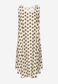 Zielono-Beżowa Sukienka o Pudełkowym Kroju Bez Rękawów w Kropki Fevasine. Odkryj wyjątkową sukienkę Fevasine, która łączy klasyczny fason z modnym printem w kropki. Dzięki pudełkowemu fasonowi bez rękawów zapewnia komfort noszenia i swobodę ruchów, jednocześnie wpisując się doskonale w najnowsze modowe trendy. Zaokrąglony dekolt sprawia, że będzie idealna zarówno na co dzień, jak i na formalne wyjścia. Stylizuj ją z trampkami i denimową kurtką w wersji casualowej lub dobierz klasyczne szpilki i elegancką biżuterię dla wyrafinowanego efektu na wieczorne spotkanie. Musisz ją mieć! Sukienka nie posiada podszewki.