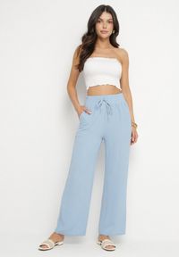 Jasnoniebieskie Spodnie o Szerokim Kroju z Wysokim Stanem i Gumką w Talii Saviellea. Odkryj modowe trendy ze spodniami Saviellea, które łączą w sobie wygodę i styl. Ich szeroki krój oraz wysoki stan podkreślają sylwetkę, a gumka w talii zapewnia komfort noszenia. Stwórz z nimi elegancki look na formalne wyjścia, zestawiając je z klasyczną białą koszulą i szpilkami, lub postaw na casualową stylizację z luźnym T-shirtem i sneakersami na co dzień. Spodnie Saviellea to must-have w garderobie każdej kobiety, która ceni sobie uniwersalne i ponadczasowe rozwiązania w modzie!