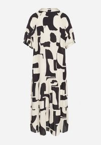 Czarna Wiskozowa Sukienka z Geometrycznym Wzorem Filarin. Odkryj swój nowy ulubiony fason tej wiosny! Wiskozowa Sukienka Filarin na guziki ze wsuwanymi kieszeniami charakteryzuje się nowoczesnym geometrycznym wzorem, który nadaje jej wyjątkowego charakteru. Świetnie sprawdzi się zarówno na codzienne spotkania, stylizowana z sneakersami i denimową kurtką, jak i na eleganckie wyjścia z klasycznymi szpilkami i biżuterią.