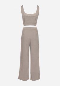 Szary Komplet Szerokie Spodnie i Top na Ramiączkach z Ozdobnymi Guzikami Lirelene. Odkryj wyjątkowy komplet Lirelene, który łączy w sobie klasyczny styl z nowoczesnymi akcentami. Spodnie z szerokimi nogawkami i wsuwanymi kieszeniami oraz dopasowany top na ramiączkach z elastyczną gumką z tyłu zdobiony guzikami tworzą dute idealny zarówno na co dzień, jak i na formalne wyjścia. Uniwersalny krój sprawia, że będziesz mogła go zestawiać na przeróżne sposoby – od casualowego looku z trampkami i shopperką po elegancki zestaw ze szpilkami i marynarką na wieczorne spotkania. Efekt wow gwarantowany! Spodnie posiadają zapięcie na guzik i suwak.
