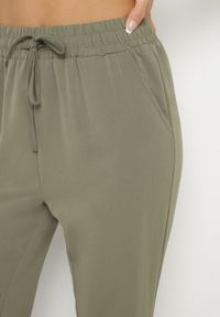 Zielone Spodnie o Prostym Kroju z Gumką w Talii i Wiązaniem Mironiela. Spodnie Mironiela to must-have dla każdej modowej entuzjastki! Klasyczny, prosty krój z gumką w talii oraz praktycznym wiązaniem sprawia, że idealnie dopasują się do sylwetki, zapewniając wygodę i komfort noszenia. Doskonałe zarówno na co dzień z białym T-shirtem i sneakersami, idealnie skomponują się również z oversize'ową marynarką i mokasynami na formalne wyjście. Wyposażone we wsuwane kieszenie, zapewnią Ci modny wygląd i funkcjonalność w każdej sytuacji — przekonaj się sama!