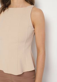Jasnobeżowa Bluzka z Wiskozą Bez Rękawów z Baskinką Linareia. Bluzka z Wiskozą Bez Rękawów z Baskinką Linareia to idealny wybór dla kobiet, które cenią sobie klasykę z nutką nowoczesności. Fason bez rękawów akcentuje ramiona, a baskinka subtelnie podkreśla talię, co czyni ją doskonałym wyborem zarówno na co dzień, jak i na bardziej formalne wyjścia. Możesz zestawić ją z casualowymi spodniami i sneakersami na weekendowy wypad za miasto, albo z elegancką spódnicą i szpilkami na wieczorną kolację. Bluzka Linareia z wiskozą, dzięki swojemu uniwersalnemu krojowi i eleganckiemu dekoltowi, doda charakteru każdej Twojej stylizacji!