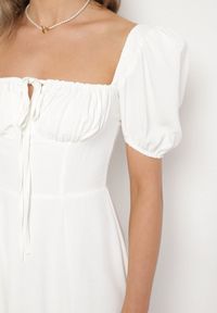 Biała Sukienka w Rustykalnym Stylu z Wiązaniem przy Dekolcie i Rozcięciem Idanillea. Odkryj sukienkę Idanillea, która łączy urok z nowoczesnym designem. Jej rozkloszowany fason i kwadratowy dekolt z pięknym wiązaniem subtelnie podkreślą sylwetkę, sprawdzając się idealnie zarówno na co dzień, jak i na formalne okazje. Krótkie, bufiaste rękawy oraz poduszki wszyte w ramionach nadają elegancji, a subtelne rozcięcie dodaje zmysłowego charakteru. Połącz sukienkę Idanillea z sandałami na obcasie i marynarką na wyjście z przyjaciółmi lub z espadrylami i plecioną torebką na spacer po mieście — możliwości są nieskończone! Sukienka posiada elastyczną wstawkę z tyłu na plecach.