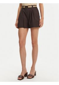 Szorty bermudy z zakładkami - brązowy. Szorty o swobodnym kroju, wykonane z wiskozy.
