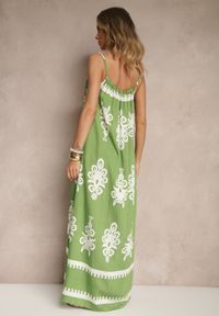Zielona Rozkloszowana Sukienka na Ramiączkach w Ornamentalny Print Reveleine. Rozkloszowana Sukienka na Ramiączkach w Ornamentalny Print Reveleine to must-have w szafie każdej modowej entuzjastki! Regulowane ramiączka zapewniają doskonałe dopasowanie, a dekolt w serek dodaje szyku, idealnie sprawdzając się zarówno na co dzień, jak i podczas formalnych okazji. Całość zdobiona jest subtelnym ornamentalnym wzorem, który przyciąga wzrok. Stylizuj ją z espadrylami i plecioną torebką na spotkanie z przyjaciółmi lub ze szpilkami i delikatną biżuterią na wieczorne wyjścia — efekt wow gwarantowany! Sukienka nie posiada podszewki.