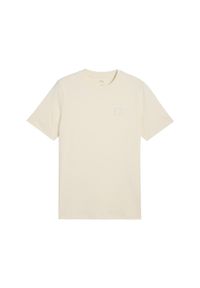 Puma - Męska Graficzna Koszulka Sportowa. Kolor: beżowy. Sport: turystyka piesza