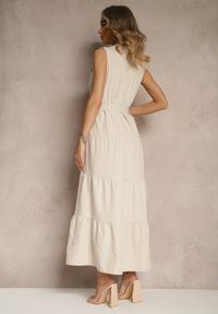Beżowa Sukienka Koszulowa z Ozdobnymi Guzikami i Paskiem Maviosa. Sukienka koszulowa z ozdobnymi guzikami i paskiem Maviosa to must-have w każdej modnej szafie! Jej klasyczny fason na guziki z kieszenie z klapami zapinane na guziki podkreśla sylwetkę. Wzór zdobiony stylowymi guzikami nadaje jej charakteru i sprawia, że będzie idealna zarówno na casualowe spotkania, jak i eleganckie wyjścia. Połącz ją z klasycznymi szpilkami i minimalistyczną torbą na co dzień, lub zestaw z eleganckimi akcesoriami na formalną okazję – w obu przypadkach poczujesz się pewnie i stylowo!