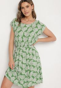 Zielona Sukienka o Rozkloszowanym Kroju z Gumką w Pasie i Krótkim Rękawem Serive. Wzbogać swoją garderobę o wyjątkową sukienkę Serive, która łączy elegancję z casualowym komfortem! Rozkloszowany krój i gumka w pasie podkreślają sylwetkę, a krótkie rękawy dodają lekkości i szyku. Klasyczny okrągły dekolt nadaje subtelnego uroku, co sprawia, że doskonale sprawdzi się zarówno na spotkaniach ze znajomymi, jak i w biurze. W połączeniu z sandałami na obcasie i marynarką zyskasz elegancki look, natomiast sneakersy i torebka shopperka będą idealnym wyborem na co dzień. Musisz ją mieć! Sukienka nie posiada podszewki.