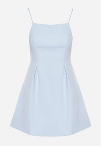 Niebieska Sukienka Vices o Rozkloszowanym Kroju na Ramiączkach Zdobiona Zakładkami Sarileve. Sukienka Sarileve to idealna propozycja dla kobiet, które cenią sobie elegancję. Jej rozkloszowany krój na suwak i subtelne zakładki dodają stylu, a kwadratowy dekolt pięknie eksponuje szyję i ramiona, podkreślając sylwetkę. Doskonale sprawdzi się stylizowana z klasycznymi szpilkami i marynarką, jak i w codziennych zestawieniach z modnymi trampkami oraz jeansową kurtką. Wybierz Sukienkę Sarileve i ciesz się niepowtarzalnym stylem i praktycznością!