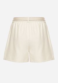 Białe Szorty Ozdobione Paskiem z Klamrą Firivelle. Te wyjątkowe szorty Firivelle to must-have w każdej modnej szafie! Ich luźny fason i wysoki stan na guzik i zamek błyskawiczny ze wsuwanymi kieszeniami doskonale podkreślają sylwetkę, a zdobiony pasek z klamrą dodaje niepowtarzalnego charakteru. Idealne na codzienne wyjścia, można je zestawić z oversize’ową bluzą i sneakersami lub elegancką bluzką oraz sandałami na obcasie na bardziej formalne okazje. Wybierz je na lato i ciesz się nieograniczonymi możliwościami stylizacji!