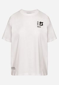 Biało-Niebieski Bawełniany T-shirt z Napisami Hallena. Odkryj bawełniany T-shirt z napisami Hallena, który jest idealną bazą dla każdej stylizacji. Klasyczny krój z okrągłym dekoltem i głębokością podkreślającą szyję sprawia, że jest niezwykle uniwersalny na co dzień. Wzór z inspirującymi napisami doda Twojej stylizacji charakteru. Spróbuj zestawić go z casualowymi jeansami i sneakersami na lunch z przyjaciółmi lub zestaw go z eleganckimi spodniami i szpilkami na spotkanie biznesowe – możliwości są niezliczone!