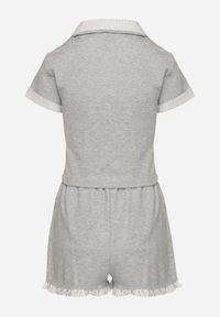 Szary Bawełniany Komplet Szorty i Bluzka Typu Polo Addoria. Oto bawełniany komplet, który łączy w sobie swobodę i elegancję – idealny wybór na każdą okazję. Bluzka typu polo na guziki z krótkim rękawem i szorty o luźnym kroju z elastyczną gumką i ściągaczami w pasie świetnie układają się na sylwetce. W sezonie letnim możesz go zestawić z minimalistycznymi sneakersami na co dzień lub z eleganckimi klapkami, by dodać stylizacji odrobinę luksusu na wieczorne wyjście. Dodatkowo delikatne detale oraz klasyczny fason sprawiają, że ten zestaw stanie się Twoim ulubieńcem!