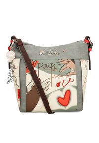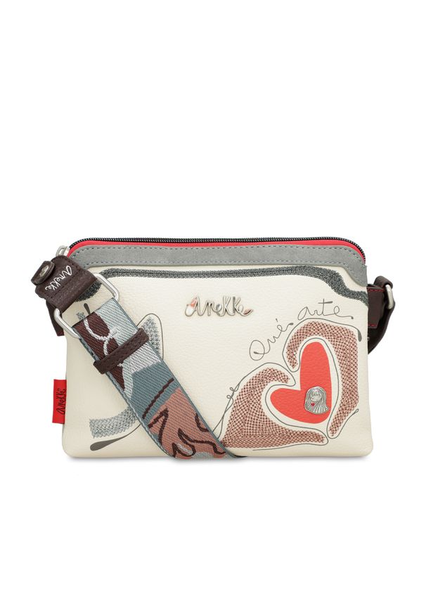 Biała Torebka Anekke Stylowa Listonoszka Damska. Torebka ANEKKE - 40763-160 to wyjątkowy dodatek pełen emocji i artystycznego wyrazu, który przyciąga wzrok swoim kreatywnym designem oraz energetycznym akcentem w postaci czerwonego serca. Subtelna kremowa baza połączona z kontrastowymi detalami w odcieniach szarości, brązu czy czerwieni tworzy harmonijną całość, która idealnie wpisuje się w nowoczesne, miejskie stylizacje. Metalowe logo, hafty, a także szeroki pasek z oryginalnym wzorem podkreślają niepowtarzalny charakter modelu. Kompaktowy rozmiar i funkcjonalne wnętrze sprawiają, że torebka ANEKKE - 40763-160 to idealny model na co dzień dla kobiet, które cenią indywidualność, wygodę, a zarazem modowy sznyt.
