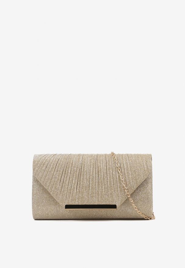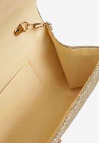 Złota Torebka Kopertówka Zdobiona Brokatem z Dołączonym Łańcuszkowym Paskiem Emedi. Oczaruj wszystkich subtelnym blaskiem, wybierając kopertówkę Emedi, która jest idealnym połączeniem elegancji oraz praktyczności. Jej kompaktowy fason pomieści niezbędne akcesoria mniejsze od formatu A4, a zapięcie na magnes dodaje funkcjonalności. Mieniący się brokat dodaje torebce wyrafinowanego wyglądu, a dołączony łańcuszkowy pasek pozwala nosić ją zarówno w ręku, jak i na ramieniu, dodając swobody. Stylistyczny tip — na lunch z przyjaciółkami zestaw ją z casualowym blazerem i mom jeans, natomiast podczas oficjalnego przyjęcia niech stworzy kompozycję z aksamitną sukienką i szpilkami.