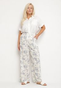 Beżowe Bawełniane Szerokie Spodnie z Wysokim Stanem Tilianea. Te stylowe, bawełniane spodnie z wysokim stanem Tilianea to must-have w Twojej garderobie! Ich szeroki krój fason z gumką z tyłu pasa ze wsuwanymi kieszeniami doskonale podkreślają sylwetkę, idealnie nadają się zarówno na casualowe wyjścia, jak i eleganckie spotkania. Dzięki efektownemu wzorowi te spodnie dodają każdej stylizacji unikalnego charakteru. Zestawisz je z oversize'owym swetrem i sportowymi sneakersami na co dzień, a na formalne wydarzenia wystarczy dodać jedwabną bluzkę oraz szpilki. Wybierz klasykę w nowoczesnym wydaniu i ciesz się stylem w każdej sytuacji!