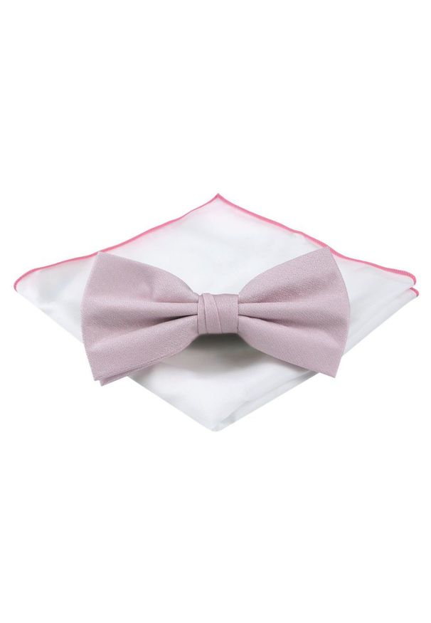 Mucha Męska z Poszetką (Zestaw) - Chattier - Perłowy Róż. Mucha męska to modny dodatek, który stanowi podstawę garderoby eleganckiego mężczyzny. Obecnie absolutnie nie ma już obowiązku łączenia jej z frakiem i koszulą z łamanym kołnierzykiem. Nowoczesna moda pozwala zestawić muchę z luźnym, miejskim i sportowym strojem. Oryginalna mucha ożywi tradycyjny garnitur, będzie również doskonale komponować się ze sportową marynarką lub kardiganem. Mucha jest zawiązana na stałe, przymocowana do paska z regulacją zapięcia. Zestaw zawiera muchę oraz poszetkę widoczną na zdjęciu. Całość zapakowana jest w eleganckie pudełko, dzięki czemu stanowi gotowy prezent.