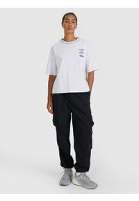 4f - 4F T-shirt oversize z nadrukiem damski - biały XS. Okazja: na co dzień. Kolor: biały. Materiał: tkanina, bawełna, materiał, dzianina, jersey. Długość rękawa: krótki rękaw. Długość: krótkie. Wzór: nadruk. Styl: klasyczny, casual, sportowy