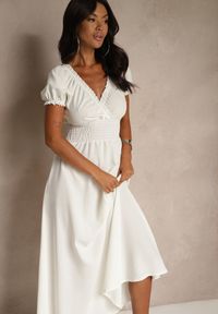 Biała Sukienka z Bufiastymi Rękawami Dolirrea. Sukienka z bufiastymi rękawami Dolirrea to must-have w każdej modowej szafie. Jej zwiewny fason z gumkami przy rękawach podkreślają kobiece kształty, a bufiaste rękawy dodają lekkości i romantyzmu. Idealna na zarówno codzienne wypady, jak i eleganckie spotkania — wystylizuj ją na co dzień z klasycznymi sneakersami i torebką na ramię, lub zestaw z obcasami i minimalistyczną biżuterią na wieczorne wyjście. Gumka w talii rozciąga się do 12 cm dla każdego rozmiaru.