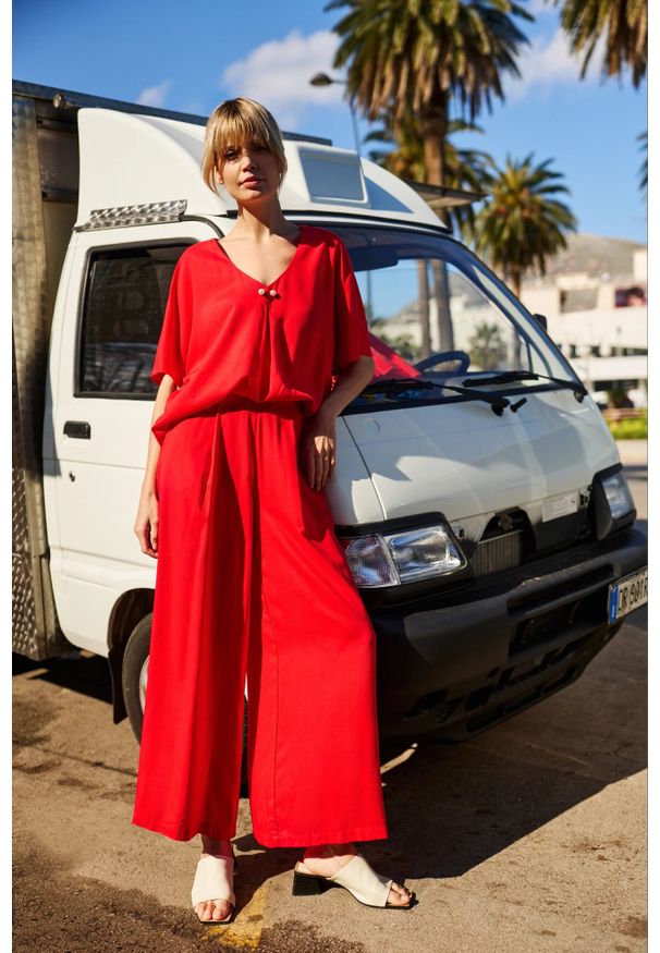 Wiskozowe spodnie z szerokimi nogawkami czerwone. 100% WISKOZA