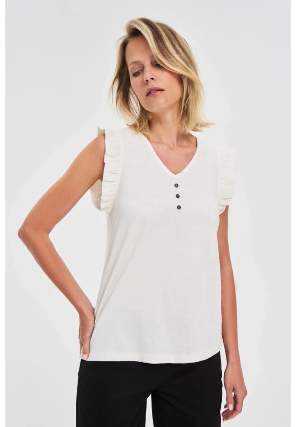 Bluzka z falbaną na ramionach biała. 100% BAWEŁNA