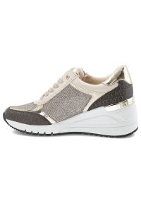Beżowe Sneakersy Marco Tozzi Modne Obuwie Damskie Na Koturnie. Sneakersy MARCO TOZZI - 2-23723-41 402 Cream Comb to synonim stylu i komfortu w nowoczesnym wydaniu. Ich subtelna kolorystyka łączy odcienie beżu, złota oraz kremu, tworząc elegancki wygląd, który doskonale wpisuje się w miejskie trendy. Cholewka z połączenia materiału tekstylnego, jak również skóropodobnego wykończona została połyskującymi detalami, dodającymi szyku czy też kobiecego charakteru. Podeszwa na koturnie zapewnia optymalne uniesienie, wysmuklając sylwetkę, a jednocześnie gwarantując stabilność i wygodę noszenia. Zamek błyskawiczny z boku to nie tylko praktyczne rozwiązanie, ale również stylowy akcent. Sneakersy MARCO TOZZI - 2-23723-41 402 Cream Comb to idealny wybór na co dzień, zarówno do jeansów, jak i bardziej casualowych sukienek – doskonałe dla kobiet ceniących modę oraz funkcjonalność.