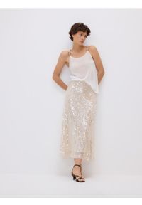 Top z ozdobnymi ramiączkami - złamana biel. Top o dopasowanym kroju, wykonany z dzianiny z wiskozą.