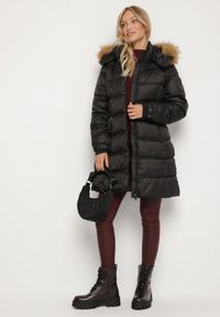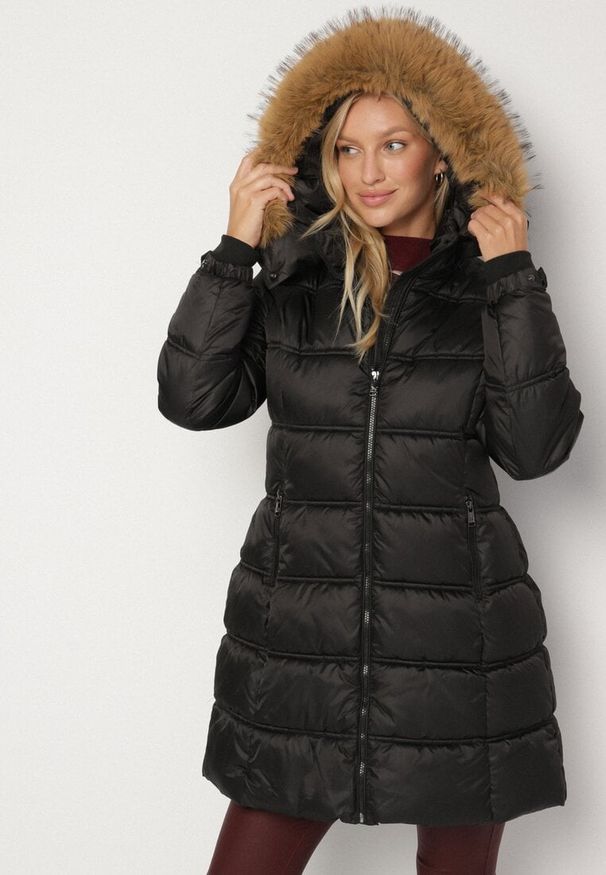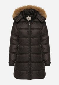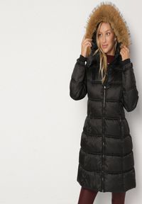 Czarna Długa Kurtka Pikowana z Kapturem z Futrem z Możliwością Odpięcia Feneia. Długa kurtka pikowana z kapturem z futrem to must-have w Twojej szafie kapsułowej ! Jej odpinany kaptur na suwak i futrzany kołnierz z zapięciem na guziki sprawiają, że dostosowanie do warunków pogodowych będzie prostsze niż kiedykolwiek, a kieszenie na suwak i mankiety regulowane na napy czynią ją niezwykle funkcjonalnym wyborem na co dzień. Posiada podszewkę (skład: 100% poliester). Idealnie sprawdzi się z jeansami, grubym swetrem i botkami na platformie. Ta kurtka łączy komfort z modnym wyglądem — dodaj ją do koszyka i ciesz się modą bez wysiłku na co dzień!