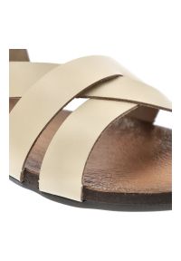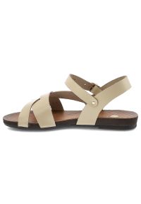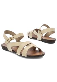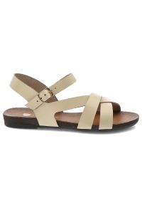 Beżowe Sandały Armodo Modne Obuwie Damskie. Sandały ARMODO - 40406 Bf.Beż to idealne rozwiązanie dla kobiet ceniących minimalizm i wygodę w eleganckim wydaniu. Wykonane z wysokiej jakości skóry naturalnej licowej, zapewniają komfort noszenia nawet przez cały dzień. Klasyczna, płaska podeszwa harmonijnie łączy się z subtelnie splecionymi paskami, które stabilnie trzymają stopę, nadając całości lekkości i delikatnego uroku. Regulowany pasek z klamrą pozwala na idealne dopasowanie, a neutralny beżowy kolor sprawia, że model pasuje do niemal każdej letniej stylizacji – od zwiewnych sukienek po casualowe jeansy. Sandały ARMODO - 40406 Bf.Beż są więc idealnym wyborem na ciepłe dni!