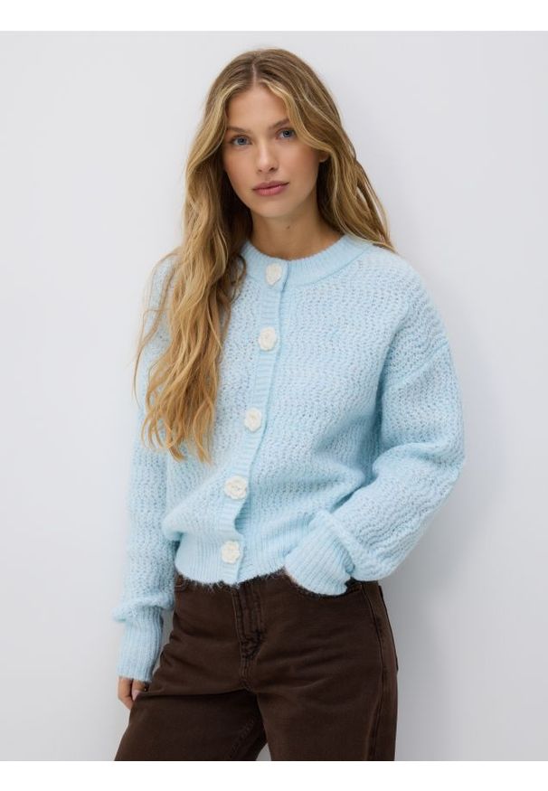Kardigan z dodatkiem wełny - jasnoniebieski. Kardigan o prostym kroju, wykonany z dzianiny z dodatkiem wełny.