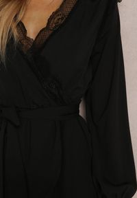 Czarna Sukienka Twinklebreeze. Sukienka Twinklebreeze z koronkowymi tasiemkami przy krawędziach. O nieco wydłużonym kroju i luźnym fasonie, z paskiem do zawiązania w talii. Z długimi rękawami zakończonymi ściągaczami. Niezapinana. Bez podszewki. Ta sukienka świetnie wygląda zestawiona z basicowymi elementami garderoby!