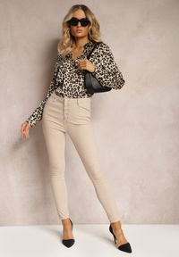 Beżowe Spodnie Skinny Winvienne. Spodnie Skinny Winvienne z długimi, mocno dopasowanymi nogawkami. Z wysokim stanem oraz zapięciem na guziki z przodu. Ze wsuwanymi kieszonkami oraz szlufkami w pasie. Dobierz do nich beżowe kowbojki lub ażurowe botki, a zaprezentujesz się modnie i z klasą! Zalecamy zapoznać się z unifikacją (zaniżona rozmiarówka).