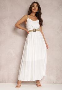 Biała Sukienka Nemenilla. Sukienka Nemenilla o pudełkowym kroju i długości midi, z zaokrąglonym dekoltem i krótkimi, nietoperzowymi rękawami. Wiązana cieniutkim paskiem w talii. Ozdobiona na plecach delikatnym rozcięciem. Bez podszewki. Kwiatowa sukienka w casualowym stylu będzie idealna na co dzień wiosną i latem!