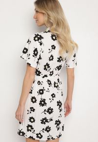 Born2be - Biała Sukienka w Kwiaty z Paskiem Cleza. Okazja: na co dzień. Typ kołnierza: dekolt w kształcie V. Kolor: biały. Wzór: kwiaty. Sezon: wiosna, lato. Styl: casual, elegancki