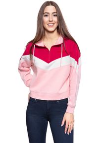 BLUZA WRANGLER CUT N SEW SWEAT BRIDAL ROSE W6N7HYP01 112130799. Damska klasyczna bluza w różowo-biało-czerwonym kolorze. Charakteryzuje ją regularny krój, okrągły dekolt oraz ściągacze.