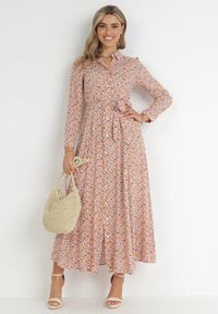 Pomarańczowa sukienka Born2be maxi, casualowa, na co dzień