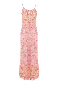 Różowa Sukienka z Wiskozy Anastosyne. Sukienka Anastosyne o długości maxi. Góra z serduszkowym dekoltem udekorowanym krótką falbanką, wycięciem i cienkim wiązaniem. Na cieniutkich ramiączkach z możliwością regulacji długości. Zdobiona guzikami w górnej części, ściągana sznurkiem pod biustem. Na dole lekka falbana, bez podszewki. Ta letnia sukienka będzie idealnie pasować do stylizacji na wyjątkowe okazje.