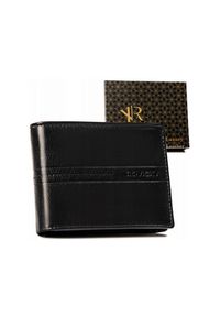 Portfel skórzany Rovicky N992-ISR-BP BLACK czarny. Portfel męski z ziarnistej, wysokogatunkowej skóry naturalnej. Wyposażony w dużą sekcję na karty i dokumenty, którą zabezpiecza antyskimmingowa membrana RFID Stop. Wewnątrz praktyczny schowek na suwak i klasyczne sekcje na gotówkę.