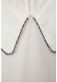 Sisley bluzka bawełniana dziecięca kolor biały gładka. - Dress Safely to linia produktów, które produkowane są bez użycia substancji chemicznych takich jak metale ciężkie czy szkodliwe barwniki, które są potencjalnie niebezpieczne dla zdrowia. Dodatkowo produkty te są bezpieczne dla dzieci, gdyż projektowane są bez użycia drobnych elementów, które niosą ryzyko zakrztuszenia.- Fason relaxed.- Długi rękaw.- Obniżona linia ramion.- Model z kołnierzykiem.- Z tyłu zapięcie na guzik.- Cienka, nieelastyczna tkanina.- Długość rękawa: 40 cm.- Długość: 38 cm.- Szerokość pod pachami: 43 cm.- Wymiary podane dla wzrostu: 130 cm.