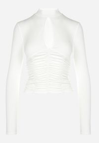 Biała Bluzka z Wycięciem Israela. Bluzka Israela z długim rękawem i półgolfem. Dopasowany fason. Przy dekolcie zdobiona subtelnym, lecz zmysłowym wycięciem. Na dole dekoracyjne marszczenie. Wykonana z tkaniny z przewagą bawełny. To elegancka bluzka, w której zaprezentujesz się olśniewająco!