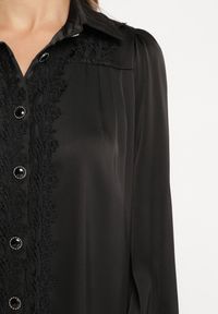 Born2be - Czarna Koszula z Kołnierzem i Wstawkami z Koronki Thaffi. Okazja: na co dzień. Kolor: czarny. Materiał: koronka. Długość rękawa: długi rękaw. Długość: długie. Wzór: koronka. Styl: casual, elegancki #5