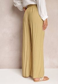 Renee - Beżowe Szerokie Spodnie z Lnem z Gumką w Talii Airelttis. Kolor: beżowy. Materiał: len. Sezon: lato. Styl: elegancki