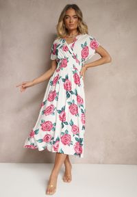 Born2be - Biała Rozkloszowana Sukienka Maxi z Wiskozy w Kwiaty z Kopertowym Dekoltem Ilitta. Kolor: biały. Materiał: wiskoza. Wzór: kwiaty. Sezon: lato. Typ sukienki: kopertowe. Długość: maxi
