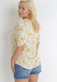 Born2be - Żółta Bluzka z Wiskozy w Kwiaty i Rękawem 3/4 Thaleta. Okazja: na co dzień. Kolor: żółty. Materiał: wiskoza. Wzór: kwiaty. Styl: casual #5