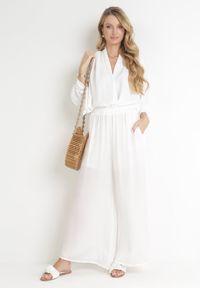 Born2be - Białe Szerokie Spodnie z Gumką w Pasie Agate. Kolor: biały. Materiał: wiskoza #3